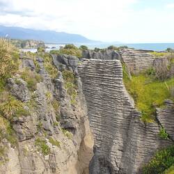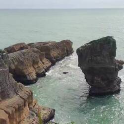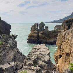 Détour jusqu'à Punakaiki tant qu'il fait beau pour ses formations rocheuses si particulières dûes à l'érosion et baptisées ainsi Pancake rocks.