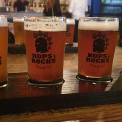 Bières locales bien méritées après un gros orage au Hops & rocks craft pub