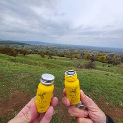 We started at the Market Hall, where a large circular plaque marks the beginning of the way. "Now the light falls across the open field, leaving the deep lane shuttered with branches dark in the afternoon." Up we go to reach the top of Dover's Hill - with a great view of the Malvern Hills. There is a memorial stone dedicated to Captain Robert Dover, a wealthy and eccentric lawyer who organized the first 'Olympick Games' here in 1612... consisting of games such as leap-frog, tug of war, and shin-kicking. This large green field is also home to some very chill sheep, and we've now learned to 'mind the poop' instead of 'minding the gap'.