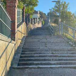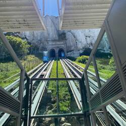 Nach dem Abendessen geht es noch einmal in die Stadt. Die Flut angucken und ein Eis đŠ zum Nachtisch. Abwärts nehmen wir den Aufzug. Für den Rückweg probieren wir die Treppen aus. Nicht soLĂ€s mer