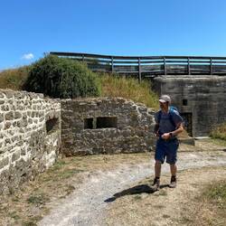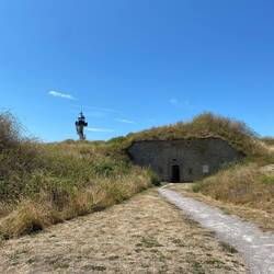 Auf dem Hin- und Rückweg passieren wir das Fort d‘Alprech. Erbaut im 19. Jahrhundert und im 2. Weltkrieg um einen Kommandobunker für den Stützpunkt „Pantofffelblume“ erweitert.