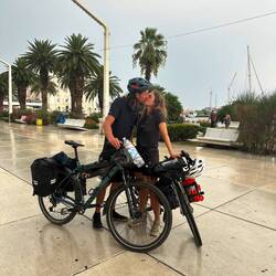 Kilometer machen ohne anstrengendes Trampeln hat doch auch was. Der Busfahrer hatte offenbar gute Laune. Und Ihr dann ja auch. Und Regen tut auch mal gut.