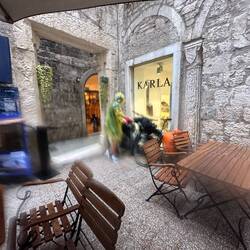 ПутешественникDie graue Stadt am Meer fällt mir spontan zu Euren Fotos ein. Aber durchaus interessant, was man von der Cevapcici-Maschine nicht gerade sagen kann. Skurril! Mit Müllsäcken bei einem heftigen Regen habe ich - wie auf dem Foto mit Lea- mal alle Schüler-/innen meines Leistungskurses trocken gehalten. Kurzfristig durchaus praktisch.