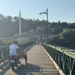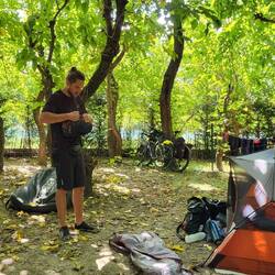 Der Campingplatz in Shkodër ist zwar groß, aber dennoch liebevoll gestaltet. Nach der Anstrengung der letzten Tage und vor allem einer sehr unruhigen Nacht auf einer luftleeren Matratze hatte ich jedoch kaum den Blick dafür. Die ersten Eindrücke in Shkodër überreizen mich in meiner Erschöpfung sehr: laute Musik die aus unterschiedlichen Lautsprechern gegeneinander ansteuert und darüber hinaus vom Gebetsgsang aus den Moscheen der Stadt übertrumpft wird, die Hektik und Schwüle einer Großstadt, Albaner die mit Touristenattraktionen auf sich aufmerksam machen, Turnschuhberge an jeder Ecke und viel Müll. In der Hoffnung mit gutem Schlaf der Erschöpfung entgegen zu wirken, nehmen wir uns ein Zimmer und es tut gut sich den Reizen etwas zu entziehen. Und auch Oli hat so die Gelegenheit etwas runterzufahren. Er übernimmt das Navigieren bei unserer Reise und ist damit neben der körperlichen Beanspruchung auch kognitiv sehr gefordert. Da fällt es teils schwer den wachsamen Modus abzulegen und in der Entspannung anzukommen,- auch wenn die Ankunft erfolgt und der Schlafplatz bereits gesichert ist. Kurzerhand entscheiden wir uns unseren Aufenthalt in Shkodër zu verlängern, um von hier ausgehend Ausflüge zu machen. Wir erhoffen uns davon etwas Entspannung und mehr Raum für uns als Individuum sowie für uns als Paar. Eine gute Entscheidung, wie sich zeigen wird.Read more