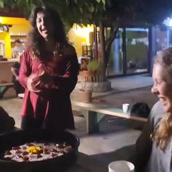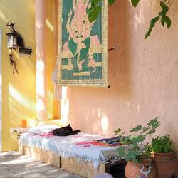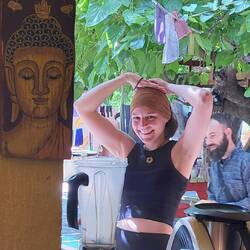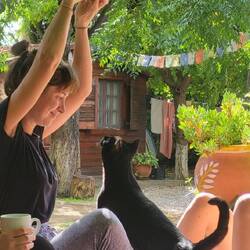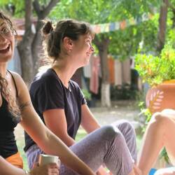 Nach dem Abschied von Oli in Patras traf ich mit etwas Schwermut im Gepäck im Sunshine house ein. Da war es wohltuend so viele vertraute Gesichter wieder zu sehen und mit einem Füllhorn an Herzlichkeit empfangen zu werden. Ich konnte mich schnell einfinden und die Kontakte, die ich zuvor geknüpft hatte, konnten sich nochmals spürbar vertiefen. Während ich zuvor als Teilnehmerin die Yin Yoga Fortbildung wahrgenommen hatte, fand ich mich nun hier in der Rolle als Volunteer ein. Betty hatte mich dazu eingeladen gegen Kost und Logis in ihrem Thai Yoga Massage Kurs zu assistieren und zu fotografieren. Das war gleich auf mehreren Ebenen bereichernd. Betty, ihre Schwester Mania und ich waren in Kürze ein gut eingespieltes Team und die Zusammenarbeit war von Leichtigkeit und einem vertrauensvollen Miteinander geprägt.