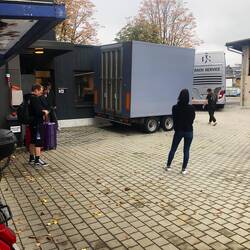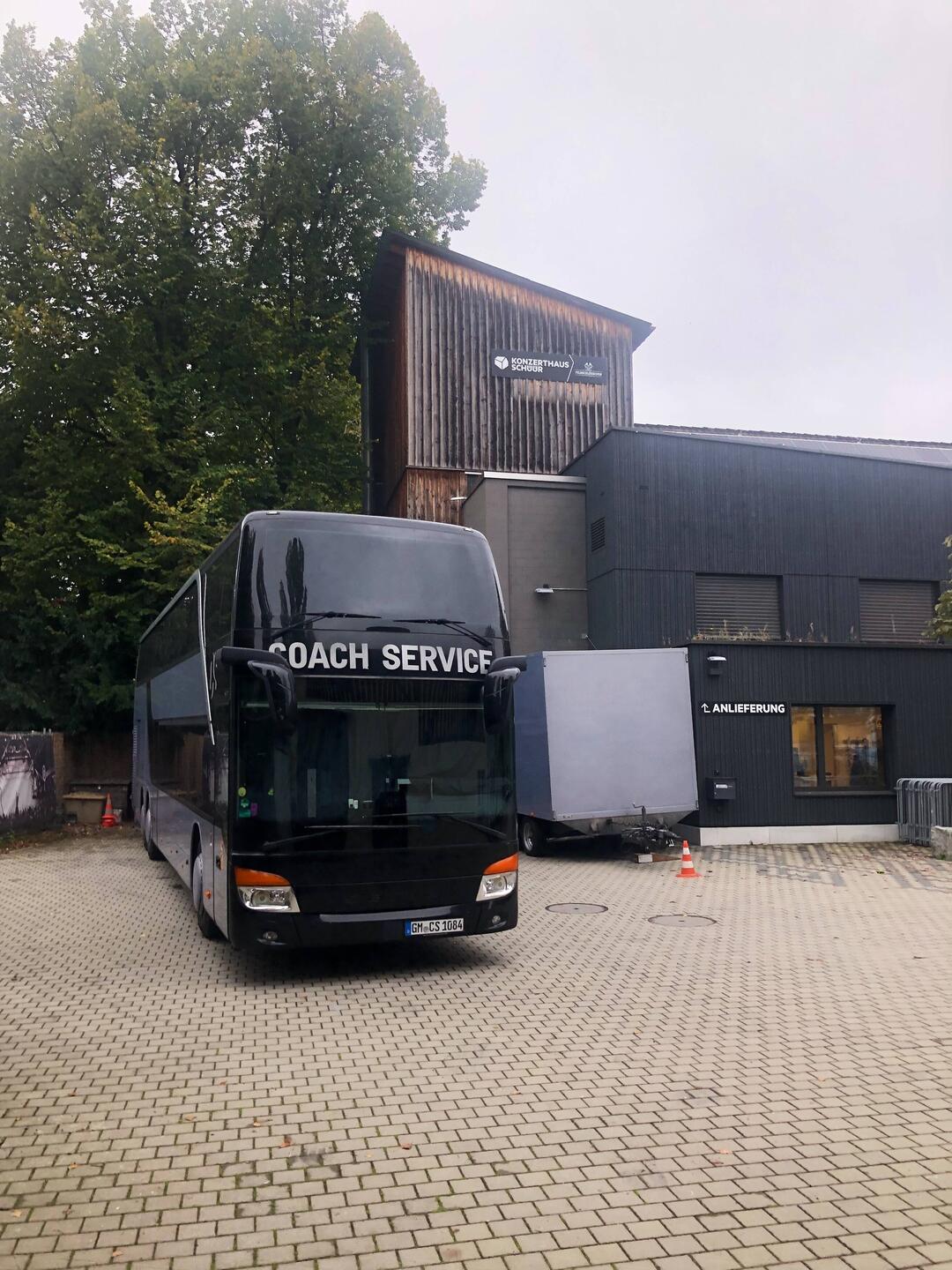 of the long drive through the mountains of Switzerland and Austria. The trailer had to be moved by a van since the bus parking space was just big enough for theRead more