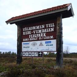 Kurz hinter Vemdalen liegt der kleine Flugplatz Hedlanda. Er ist wirklich klein (Start-/Landebahn ist gerade mal 1200m lang und 35m breit) und im Moment auch saisonbedingt geschlossen, aber der Stellplatz nebendran ist in Betrieb. Im "Abfertigungs-Restaurant-Toiletten-Alles Mögliche"-Gebäude ist noch jemand vor Ort und dort bezahle ich die Übernachtungsgebühr. Sonst geht das nur per Swish - oder per Bargeld im Briefkasten.
