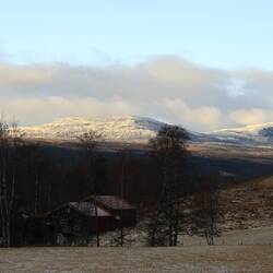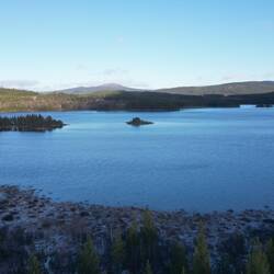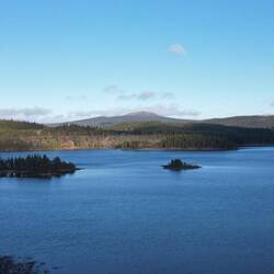 Um kurz nach 10:00 Uhr geht's los Richtung Funäsdalen. Bish dahin will ich auf jeden Fall - ob ich dann noch zum Flatruet abbiege, werde ich sehen. Die Landstraße 84 führt am Ljusnan entlang. Meist verläuft die Straße zwischen den Bäumen, aber hin und wieder kann man auf's Wasser sehen. Ein wundervoller Blick. Kurz vor Funäsdalen halte ich an einem Abzweig an (hier wird eine neue Blockhütte gebaut), hole meine Drohne heraus und laufe ein Stück die Straße zurück. Hier habe ich einen wunderbaren Blick auf kleine "Seen", die zum Ljusnan gehören. Leider passe ich einen Moment nicht auf und trete mit beiden Füßen in eine überschwemmte Fahrspur. Es ist saukalt!!! Naja - das muß ich jetzt mal aushalten - erstmal lasse ich die Drohne fliegen und mache ein paar schöne Aufnahmen. Das Wetter ist zu schön, um sich mit solchen "Kleinigkeiten" aufzuhalten. Bevor ich weiterfahre wird es dann aber doch Zeit für "Füße trockenlegen" und frische, warme Socken. Immerhin sind ja 2 Grad Plus - einfrieren tun die Füße also nicht.