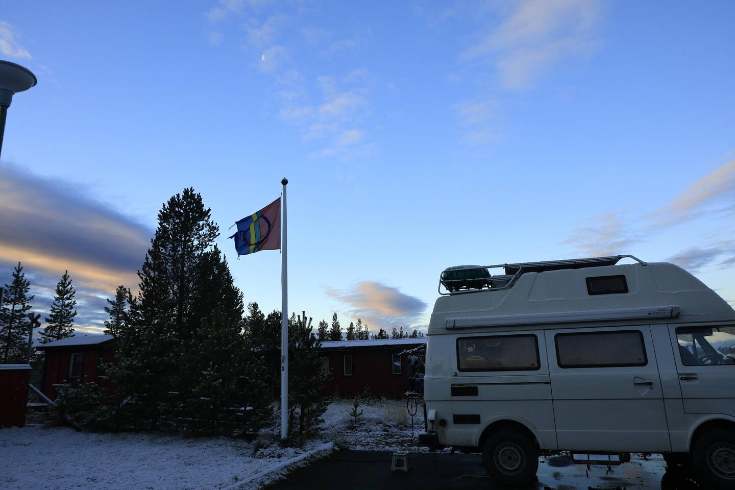 Umso besser geht's mir heute. Heute früh lugt doch glatt endlich wieder die Sonne über den Horizont. Das gibt doch mal einen richtigen Schub. Ich stehe schon vor 8:00 Uhr auf und bereite langsam meine Abfahrt vor. Ein paar Fotos müssen zwischendrin auch sein. Es ist knackig kalt, hat aber nur ein wenig gefroren. Mal sehen, wie der Camper nachher anspringt. Außerdem muß ich jetzt wohl endgültig das Wasser ablassen, denn in den nächsten Tagen soll Dauerfrost kommen. Aber mit Sonnenschein kann man auch das ganz gut aushalten.