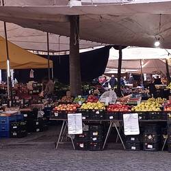 Und ich habe noch einen Fehler gemacht: ich habe zwar den Wetterbericht angesehen, mich aber viel zu sehr auf die Tageshöchsttemperatur konzentriert.... Jetzt morgens ist es verdammt kalt. Also erstmal in ein Café und "frühstücken": ein kleiner Kaffee und ein Muffin für 2,50€ - da kann man nicht meckern. Gegen 9:30 Uhr wird es etwas voller und wärmer. Ich schlendere zwischen den Ständen hindurch und staune, was es hier alles auf einem Wochenmarkt gibt: sogar kleinere Möbel gibt es.