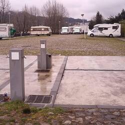 Bis nach Parades de Coura sind es nur 25km, aber schon das Navi spricht von mehr als 30 Minuten...da werde ich wohl rund 1 Stunde brauchen. Eine Kurve, Spitzkehre und Ortsdurchfahrt jagt die nächste und beim 15. Kreisverkehr noch bevor die Hälfte der Strecke vorbei ist, höre ich auf zu zählen. Das macht die Fahrt nicht angenehmer. Dazu etwas Nebel und Nieselregen. Aber auf dem Stellplatz ist nur 1/3 besetzt und ich kann mir einen guten Platz aussuchen. Der Strom funktioniert, das WLan leider nur mittelmäßig, aber V&E gibt's auch - "interessant" in der Mitte des Platzes angelegt. Über eine "Hintertreppe" ist man in 2 Minuten beim Intermarché. Es ist eine internationale Mischung: Portugiesen, Franzosen, Engländer, ein Wohnmobil aus Bremen und später kommt noch ein Camper aus Schweden (und stellt sich, völlig "unskandinavisch", direkt neben mich auf den letzten Platz vor der Mauer - aber egal). Ein Gang zum Intermarché füllt meinen Kühlschrank und bevor ich mich zum "Abschluß des Tages" noch um den LT kümmere, koche ich erstmal etwas zu essen.
