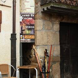 Ich parke beim "Messe-Gelände". Hier darf man (im Gegensatz zu den Parkplätzen am Flußufer auch mit dem Camper parken und sogar über Nacht bleiben). Der Weg in die Altstadt ist kurz und führt mich zuerst zum Fluß und dann zwischen die netten, mittelalterlichen Häuschen. Hier finde ich etwas, was ich bisher hier im Süden noch nie gesehen habe: ein "Honighaus", in dem man nicht nur Honig kaufen kann, sondern auch verschiedene Sorten von Met und Honigessig. Der Besitzer, ein Imker, erklärt mir in gutem Englisch etwas über die Geschichte und die Herstellung besonders vom Essig und vom "sparkling Met" - eine Art Honig-Prosecco. Klar, daß ich da auch was kaufen muß 😉