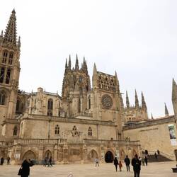 Nach einem zweiten Tag Pause in Palencia besuche ich heute Burgos. Die Stadt ist eine weitere Provinzhauptstadt und liegt (wie auch Léon) am Jakobsweg. Ihr Name kommt (zumindest ist das eine Erklärung) von der gewaltigen Burg, die als Schutz gegen die Mauren gebaut wurde. Mir ist der Name das erste Mal in Umberto Eco's "Der Name der Rose" untergekommen - Jorge von Burgos spielt in dem Roman eine entscheidende Rolle. Die Burg kann man im Moment nicht besichtigen - und selbst wenn: sie ist nur im Rahmen einer Führung zu besichtigen und die gibt's nur auf Spanisch. Also halte ich mich an die Altstadt und die Kathedrale.