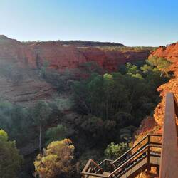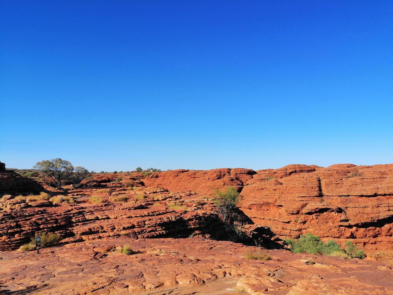 Heute machten wir uns wieder vor Sonnenaufgang auf und diesmal ging es zu unserem Startpunkt unserer heutigen Wanderung, zum 6 km langen Kings Canyon Rim Walk. Man muss früh starten denn nach 8 UhrBaca selengkapnya