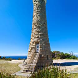 Eddystone Point Lighthouse, der mit seiner 35m Höhe 42km weit sein Licht verbreiten kann.
