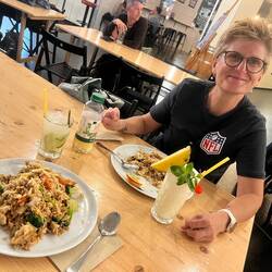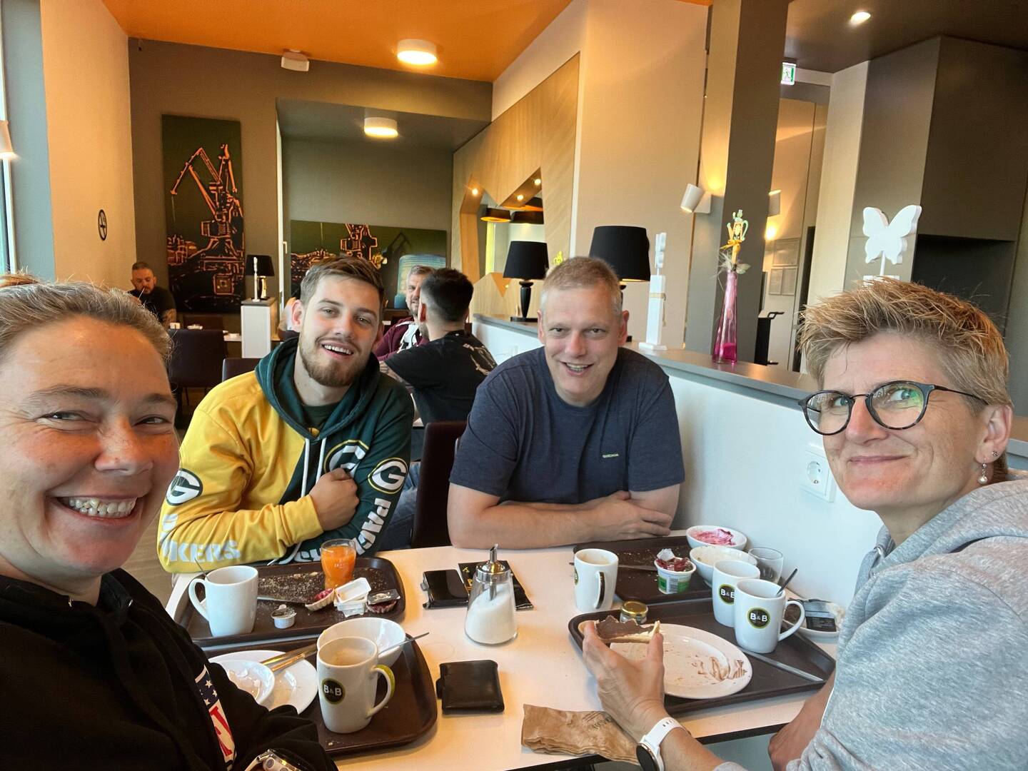 Kaum aus dem Bus getorkelt, winkt Alex schon aus dem Hotelfenster vis-à-vis - sehr cool! 🤩 gemeinsam starten wir mit gemütlichem Brunch-Buffet in den Tag 🤩