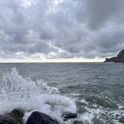 Spaziergang mit Nayra über einen Naturtrail zur Küste. Hier soll es viele Vögel zu sehen geben - wir entdecken nur Altbekannte: Möwen, Spatzen und Amsel. Für die Portion Frischluft und den erstenLeer más