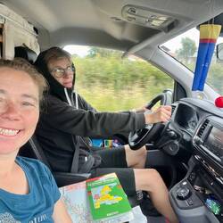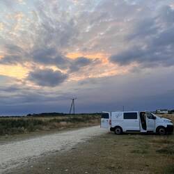 … für uns eher die untergehende Sonne… hier übernachten wir an einem ruhigen Seitensträsschen… Rahel meint, ich soll nicht immer soviel ‚blabla’ schreiben…. Na denn: Guet Nacht! 🥰