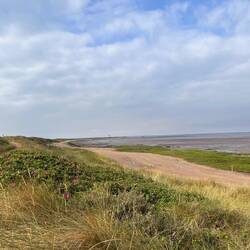 Heute kommen unsere Gummistiefel erstmals zum Einsatz! Ich will zum 3 Meilen entfernten Leuchtturm rauslaufen, Rahel macht mit 🐕einen Strandspaziergang - Hunde sind auf dem Landzipfel (=Leer más