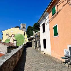 Das kleine Dorf liegt etwas im Innern im grünen Mirnatal und zählt keine 500 Bewohner, viele davon Künstler. Ganz oben auf dem 277m hohen Hügel gelegen und von Stadtmauern umgeben ist wohl klar -Read more