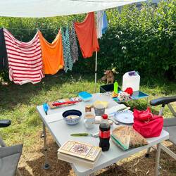 Heute geniessen wir Beach-Time. Es gibt im Camping einen Hundestrand - keine 500m von unserem Plätzli. Wir wähnen uns im 7. Himmel - sind doch noch einige Liegestühle und Sonnenschirme frei -Read more