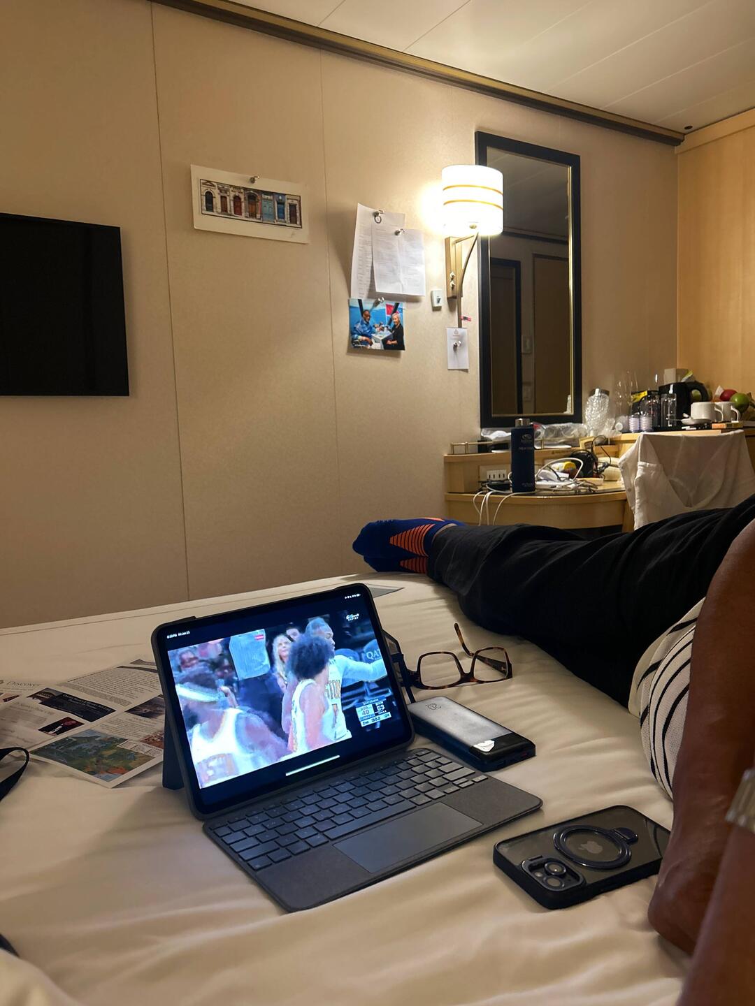 We had a casual Friday night. Dinner in buffet and Celtics basketball game on the laptop.