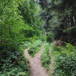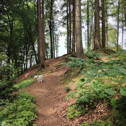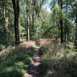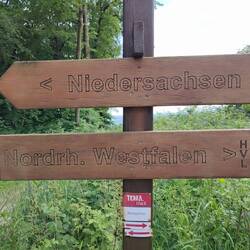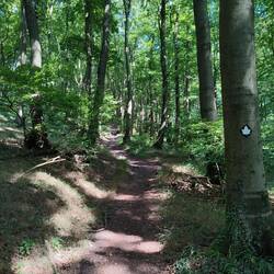 Da nun gestern das Wetter perfekt zum Wandern war - 22 Grad, Sonne und ein paar Wolken im Mix - ging es für mich auf den ersten Teil des hiesigen Ahornweges. Dieser Weg ist 100 km lang und besteht aus 2 Schleifen, deren Schnittpunkt mein Zuhause ist. Ich bin dem Zeichen dieses Weges schon oft begegnet und habe ihn auf meiner Liste. Also raus aus der Haustür und ab in den Wald. Der Weg führt erst einmal über Forstwege, die aber geschlungen durch den sehr abwechslungsreichen Mischwald mit kleinen Bächen nicht nerven. Ich sehe den Vorteil dieser Wege darin, den Blick wandern zu lassen, ohne über etwas zu stolpern. Zuerst kam eine sanfte Steigung zum Limberg mit dem Zeppelinstein, der an einen Absturz erinnert, der für alle glimpflich ausging. Es folgten schöne Singletrails hinauf zum Musenberg, von dem ich einen herrlichen Blick auf Kloster Oesede und andere Dörfer hatte. Runter vom Musenberg führt ein wunderschöner Singletrail, der dann in einen Waldweg mündet, welcher sich um den Berg herum schlängelt. Um eine Kurve erschien ein Reh auf dem Weg und Murphy beschleunigte auf Warp speed. Als das Reh plötzlich auf ihn zulief erfolgte die Abbremsung und Kehrtwende und er rannte mit derselben Geschwindigkeit zu mir zurück. HILFE...Tollwut - schoss es mir durch den Kopf 💥Das Reh war kein Reh, sondern ein Hund😂. Wir sind beide drauf reingefallen,und das Frauchen und ich lachten herzlich, als sie um die Kurve kam. Vielleicht kuriert den Murph das endlich mal. Weiter ging es durch wirklich wunderschön verwunschene Waldpfade zur Uberquerung der B 51. Danach begann der Aufstieg zum Dörenberg, der schon vom Küchenfenster üppig aussieht für Teuto-Verhältnisse. Joa, war er auch 😅. Aber oben angekommen ist der Ausblick fantastisch. Dort steht der Hermannsturm, von dem man noch mehr sehen kann, falls man hochgeht. Es lohnt sich, die Bilder vom Turm mal ranzuzoomen, er ist toll besprüht. Nach 3 Etagen bin ich wieder runter, da mein Magen sich umdreht😜. Also lieber frischen Kaffee und Käsebrot mit Ausblick am Panoramafenster. Weiter ging es auf dem Kammweg, bis ich dann abbog Richtung Forsthaus Oesede. Der Abstieg war unerwartet steil und lang, jedoch klasse. Nach 17 km ging ich dann nach Georgsmarienhütte, da ich noch 5 km zur Bushaltestelle zu gehen hatte. Ich freue mich immer wieder, wenn Wege noch viel schöner sind, als erwartet. Und dieser erste Tag hat all meine Erwartungen übertroffen. Eigentlich sollte heute der 2. Tag folgen, jedoch zeigt Murphy mir die Stinkepfote. Er hat ja noch den Kastrationschip, den ich ihm für den NST verpasst habe, damit er die Hündin meines Sohnes nicht schwängert. Das merke ich sehr, denn er ist doch eher faul und ich bin froh, wenn im September die Wirkung stoppt und ich wieder einen lauffreudigen Hund habe. Teil 2 der kleinen Schleife folgt dann am Sonntag, falls das Wetter mitspielt, bevor es dann an die große Schleife geht.Read more