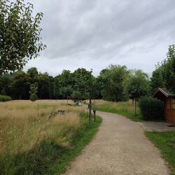 So, die Wetterapp faselt was von Regenwahrscheinlichkeit bei 90% - egal, ich will gehen. Gute Entscheidung, denn es wurde ein toller Tag mit perfektem Wanderwetter. Die große Schleife (60km)vom Ahornweg ist fällig und so ging es in Bad Iburg los und direkt auf den Berg in einen schönen Mischwald auf einen Hangweg. Hinab in das schöne Münsterland sollte es doch wesentlich flacher werden, als auf der kleinen Schleife mit 40km. Der Weg nach Bad Laer (16km) war wunderschön und führte durch Bauernschaften mit sehr alten Höfen, kleinen Wäldchen, an Bächen entlang und mit Freude sah ich auf diesem Abschnitt 4 Rinderherden, wo der Bulle seine Mädels und Kälber alle bei sich hat. So soll es sein. Pferde, Hühner, Schafe und reife Getreidefelder gaben ein Bullerbü -Gefühl. Weites, sattes Bauernland - ich mag es❤️ Aber der eigentliche Star ist der Himmel mit wunderschönen Wattewolken über die erste Tageshälfte. Bad Laer ist ein kleines Soleheilbad - schnuckelige Fachwerkarchitektur mit einem kleinen Kurpark und Gradierwerk. Weiter ging es durch einen sehr schönen Wald Richtung Bad Rothenfelde hinauf zum Lüdenstein. Spätestens in diesem Wald macht der Weg seinem Namen alle Ehre, denn ich habe in diesem Teil Deutschlands noch nie solch eine gebündeltes Vorkommen von Bergahorn gesehen. Vom "kleinen Berg" runter ins feine Bad Rothenfelde, mit seiner klassizistischen Bäderarchitektur, traf ich einen alten Herrn. Der fragte mich, ob ich ein "solches Zauberding" in der Tasche hätte, und nach meinem fragenden Blick stellte sich heraus, dass er ein Smartphone meint😅 Er wolle auf den Berg, aber er traue dem Wetter nicht. Dann saßen wir eine Stunde auf einer Bank und quatschten. Und siehe da - er ist 92 Jahre alt und macht 3 Wochen Urlaub zum wandern. Es stellt sich heraus, dass seine Tochter und ich im gleichen Ruhrpott- Krankenhaus unsere Ausbildung gemacht haben und uns kennen. So klein ist die Welt manchmal. Mittlerweile hatte sich der Himmel zugezogen, und es ging weiter in den Kurpark. Hier steht eines der längsten Gradierwerke Europas und der Kurpark ist mit seiner Weitläufigkeit und dem Rosengarten ein echter Knüller ✨. Raus aus dem Ort geht es durch einen relativ neu angelegten Naturgarten-Park, den verschiedene Vereine, Firmen und Privatpersonen aus Bad Rothenfelde angelegt haben. Streuobstwiesen, Kräuter und Biotope - das wird klasse, wenn er groß wird. Der folgende Weg nach Hilter ( ja - ich verlese mich auch immer noch 🤪) führt wieder durch einen Wald über einen kleinen Berg. Beim "Abstieg" nach Hilter hat man einen feinen Panoramablick auf den Teutoburger Wald, was einem den schnurgeraden Weg hinab in den Ort versüßt. Man sieht von hier aus links den Fernsehturm Tecklenburg und rechts das Windrad bei Borgholzhausen - also 2 Tagesetappen Hermannsweg auf einen Blick 🌳🌲 Hilter ist unspektakulär, aber mit Bahnhof ausgestattet, was hier nicht so häufig der Fall ist. Und so ging es nach 29 km dann ab nach Hause. Leider macht meine Bandscheibe nach guten 20 km immer noch Alarm, aber der Weg war es wert. Als ich im Zug sitze fängt es an zu regnen. Perfekt 👍🏼. Der Weg ist eine sehr schöne Mischung aus Wald, Feld und Gartenkunst und hat bisher richtig Freude gemacht.Read more