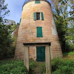 Zu dem Aussichtsturm habe ich eine lustige Geschichte. Ich schon viele Jahre her, da stand ich auch unten am Fuße des Turmes. Irgendwer hat mit rosa Farbe Katzentatzen an die weisse Wand gestempelt. Die Tatzen führten wie eine Spur, msl an der Wand mal auf den Stufen, bis nach oben. Den ganzen Aufstieg habe ich mich gefragt, was soll das? Oben auf der Plattform stand die Lösung. Hier war hat mit rosa Buchstaben zu lesen : Heute ist nicht alle Tage, ich komm wieder, keine Frage!