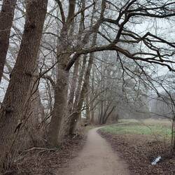 Die dicke Berta (mein innerer Schweinehund) hat es sich über die Feiertage recht bequem gemacht und so konnte ich sie mit Ach & Krach so gerade noch zu den täglichen NW-Runden mitschleppen. Also den dicken Sack gepackt und Montag Vormittag ging's los. Ich habe mir mit Komoot eine Route über 22 km getüftelt. Ziel war eines der Kinder mit Garten - da wollte ich mal mein Schlaf-Setup auf Kältetauglichkeit testen. Also trieb ich Berta unter Androhung der Peitsche vor mir her und es ging in den Freden, was direkt vor meiner Tür liegt. Der Freden ist Teil des Teutoburger Waldes und so wanderte ich über den kleinen Freden auf den Limberg und über den Musenberg Richtig Kloster Oesede. Die Wälder und Wiesen sehen wunderschön aus mit ihrer Puderzucker-Schicht. Durch das Schlochtertal ging es vorbei an zugefrorenen Teichen zur Klostermühle Oesede, die keine Mühle mehr ist. Passt, denn das Kloster ist auch keines mehr. Immer wieder ging es über bewaldete Hügelketten (Ausläufer vom Wiehengebirge & Teuto, die mit dem Weserbergland geologisch quasi eins sind) über kleine Bäche durch verschiedene Bauernschaften Voxtrup, Natbergen, Lüstringen nach Burg Gretesch. Dort kam ich dann an und wurde abends fein bekocht. Berta lag irgendwann vollgefuttert auf dem Sofa mit Hund im Arm und Kind fragt:" Mama, es sind -6° Grad - willst Du echt noch dein Zelt aufbauen?" Berta und ich sind uns zur Abwechslung mal einig. Nö. Also nach warmer und bequemer Nacht trat ich dann heute den Rückweg an. Die Sonne blinzelte ab und zu mal durch und der Weg hat Spaß gemacht. Ich musste mich aber sputen, da ich vor Einbruch der Dunkelheit die letzten 5 km durch den Freden schaffen wollte. Hier ist nämlich zur Zeit Wildschwein-Alarm, und seit mir vor rund 2 Wochen circa 1,5 Meter neben mir eine Rotte unter jungen Tannen einen Schrecken eingejagt haben, hab ich's doch lieber hell, wenn ich da nun singend vorbei gehe...😅 Auf dem Limberg wurde es dann zusehends nebliger und dunkler, was mit der akustischen Untermalung eines Schwarzspechts eine mystische Stimmung zum Abschluss bot. Zumindest hat Berta den Allerwertesten hoch bekommen und ich habe meinen Rücken mal wieder ein bisschen Gewicht tragen lassen.Read more