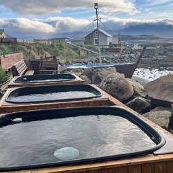 Herrlich. Und auch das Meer mit 8 Grad verliert seinen Schrecken wenn ein 35 Grad HotPot in der Nähe ist.