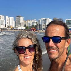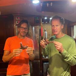 Feb 25- Taught class. Tracked down workers to fix stantion and to fix the paint and wood in the transom . Brian went up the mast twice to try and fix the steaming and anchor light… didn’t work… Bernie and I went to the Marine Store across the street to get bolts for the stantion and a new LED. Brian went for a shower, and Bernie and I were starting to put the newly varnish flooring into the rudder room when we were swarmed by bees. The… like 500 or more, settled on the aft davit. Brian came back from shower but couldn’t get on boat. He and Bernie got into it, as we were trying to find an unharmed way to get rid of them and Brian wanted to be consulted… as he just wanted them gone. He boarded the boat once they settled, and took the pee jug (a vinegar jug with a she wee, that we use in the middle of the night as it is easier and less noise then pumping the toilet)… he grabbed the life line as we was doing it… and fell in… forgetting they weren’t attached. He had to shower again. He began putting the floors in again, and I got stung by a bee in my palm. Had Tacos in Getsemani.