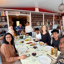 Friday I relaxed in the morning (not teaching due to the biopsy), eventually catching someone home at Arlington to pick up my mail, and picking up cake and food for Dad party the following day. I also was working out the logistics to surprise Dad with Andrew coming home. Shelia dropped off van at the airport (with car seat), Andréia rented me her condo and I got groceries and child proofed it. In the evening Pasq and Manju hosted a dinner… with the Silva’s and Sheila and Jamie. The Silvas brought lots of food, including a cashew dish that I’ll have to learn to make as Brian would love it. Made my way to the condo, and Andrew and Kai had arrived and were still up. I got to read Kai books before bed!