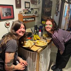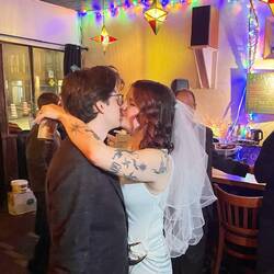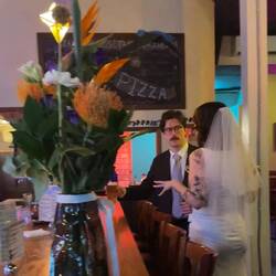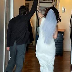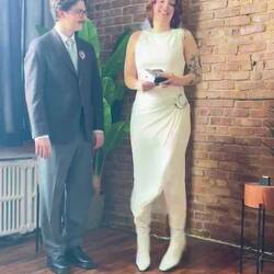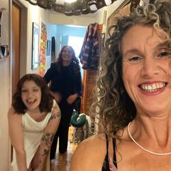On Monday morning at 10am, I joined them. Looking around, I decided that I would be most helpful by cleaning (LOTS of dishes, Laundry, bathroom, etc..) so they would have a clean space to return too after the marriage (and when they returned from the honeymoon). Robyn did Ashlynn’s hair, and Aria cooked Finnish crepes, eggs and sausages. Then it was makeup and getting dressed time. After trying on a few, I went with my old dress that I gave to Ashlynn for a wedding last summer, and her shawl. We all got in an Uber and went to the Airbnb where the “ceremony was held.