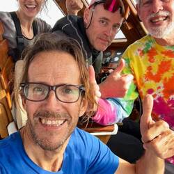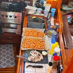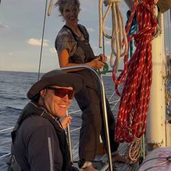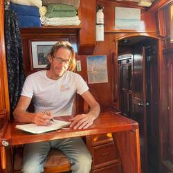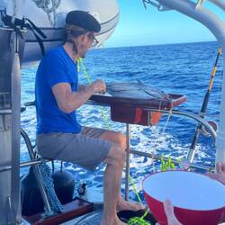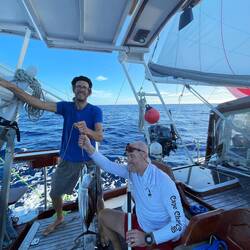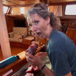 At the helm again, the sailing is beautiful, although the wrong direction. The engine room is too hot to keep all our precious Costco meat and fresh caught fish frozen…. So we are giving it a break!Read more
