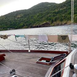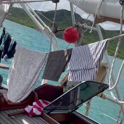 We sailed to Barbuda, a 35mile trek. The winds were blowing strong and it was a good sail, but long. I have work to do but it was to challenging to sail and work. Brian lifted anchor and got usRead more