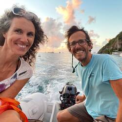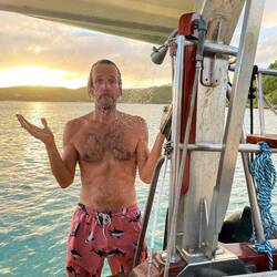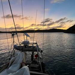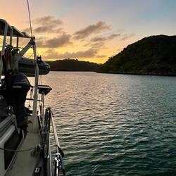 Nice to wake up and see a new place! I jumped into the water early and swam around the boat. Brian joined and decided to start cutting away the fishing line that had gotten wrapped around the prop. HeRead more