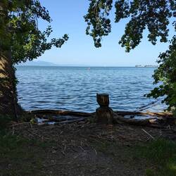 Frühstück war gut und so ging es beizeiten auf die erste Etappe. Schnell noch etwas Bodenseewasser geschöpft (das soll dann in den Gardasee entlassen werden) und noch vor der Hitze des Tages on Tour.