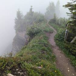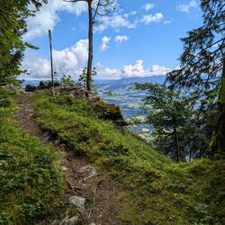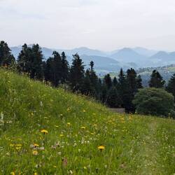 Eigentlich führt die erste Etappe über den Hausberg des Bodensee, den Pfänder. Allerdings wollte ich den ersten Tag nicht gleich aufs Ganze gehen und hab deshalb die Seilbahn genommen. Der kleine Umweg hat sich auf jeden Fall gelohnt. Auf reichlich 1000 Metern war es deutlich angenehmer und die Sicht auch einigermaßen.