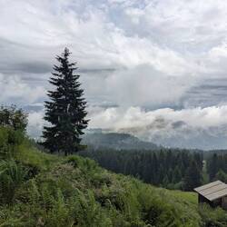 Und es kam was nicht kommen sollte. 2 km vor der Bregenzer Hütte begann es in der Ferne zu Donnern und leicht zu tröpfeln. Also einen Zahn zugelegt in der Hoffnung, vor dem Gewitter an der Hütte zu sein 🤣🤣🤣.
