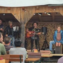 Zurück durch blühende Feuchtwiesen an der Hütte angekommen, waren die Vorbereitungen für den Countrynachmittag abgeschlossen und die Band beim Soundcheck.