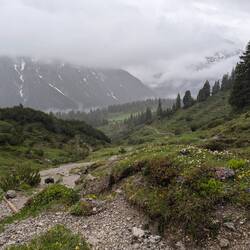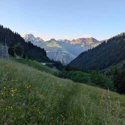Da es heute ab 10:00 Gewittern sollte, hab ich mich entschlossen so früh zu starten, daß ich bis dahin an der Bregenzer Hütte bin.