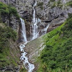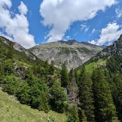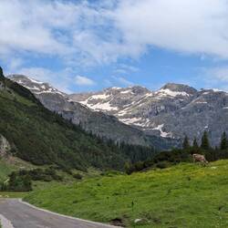 Nach dem Runter, in Alberschwende, kurze Rast im Dorfgasthof. Da gab's einen großen Almdudler (0,35 l scheint in Österreich groß zu sein). Vor allem aber, war heute Schnitzeltag. Leider war ich etwas unter Zeitdruck und muste das Schniposa skippen. Ich hatte ja auch noch den Anstieg zur Hütte vor mir. Und mit nem Riesenschnitzel im Bauch ... .