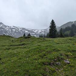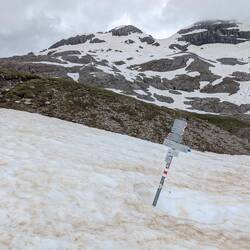 Über 2000 m liegt halt zum Teil noch ziemlich viel Schnee. Die Chefin von einer Alpe hat mir gestern erzählt, das es Anfang Juni nochmal 30 cm Neuschnee gab ... .