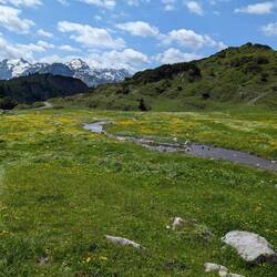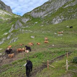 Laut Sennerin war bis vor 3 Tagen so wenig Gras, dass sie zufüttern mussten. Seit drei Tagen wächst das Gras jetzt, da jetzt der Schnee weg und etwas mehr Sonne ist. Sie konnte sich auch nicht an solches Wetter erinnern, seit sie die Alpe bewirtschaften. Ähnliches erzählte der Wirt der Freiburger Hütte. Bis vor 10 Tagen war die Hütte noch nicht mit normalem PKW erreichbar, nur mit Geländewagen war ein Durchkommen.
