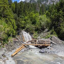 Dann ging es parallel zum Wäldletobelbach, steil durch einen schönen, kühlenden Bergwald abwärts in Richtung Klösterle. Dann kam auch der Ort eeeendlich in Sichtweite. Sah gut aus. Also vermutlich hätte jede Behausung gut ausgesehen, aber sah wirklich schön aus 😃.