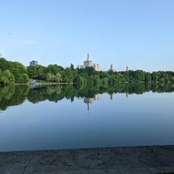 I ran 3.2 miles at Herăstrău Park. It's conveniently just off a metro stop. It's a large park with green grounds and lengthy paths surrounding Lake Herăstrău, which is fed by the ColentinaLeer más