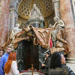 Since we weren't with a formal tour group, we had to leave the Sistine Chapel, go back through the museums, then walk all around the wall. Once we were in St. Peter's Square, we had to wait in line toWeiterlesen