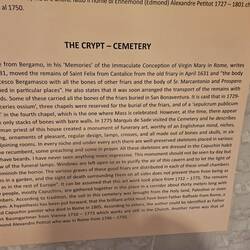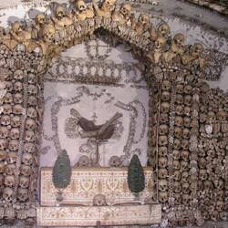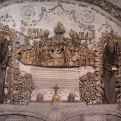 From Wikipedia: There are six total rooms in the crypt, five featuring a unique display of human bones believed to have been taken from the bodies of friars who had died between 1528 and 1870.