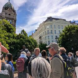 We ended our tour at the haunting Shoes on the Danube, a quiet memorial to Jewish victims shot into the river by the fascist Arrow Cross militia. Groups of 3-4 would be tied together, and then just one shot, plunging them all in to the Danube (to save bullets). Sixty pairs of iron shoes line the riverbank - men’s, women’s, children’s - a reminder of Hungary's complicity with the Nazi regime. The mood around the monument is somber, and I found myself crying at the site of the little shoes next to a pair of women's loafers.もっと詳しく